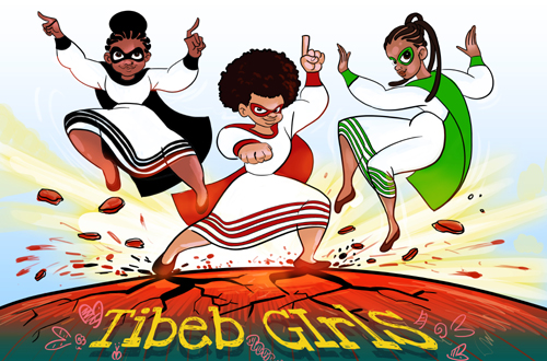 whizkidsworkshop.com/projects/tibeb-girls | Auftritt der „Tibeb Girls“, von denen der Cartoon auf dieser Seite eine Kostprobe gibt.