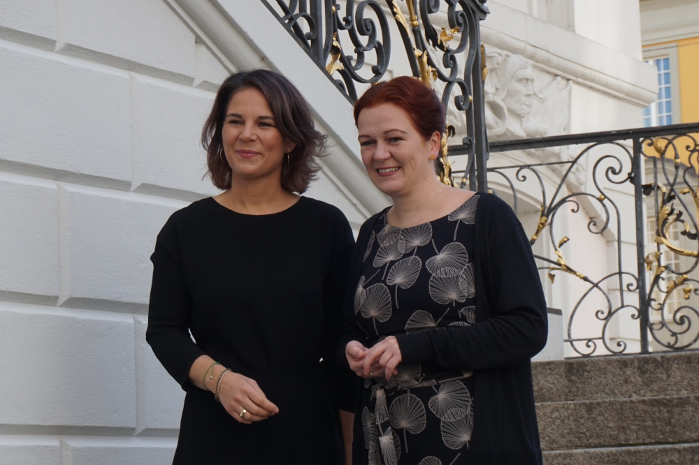 „Heute geht es hier um die ganz großen Themen: Ukraine, Iran, Äthiopien und Klimakrise“, so begann die Bonner Oberbürgermeisterin Katja Dörner den Bürger:innendialog mit Außenministerin und Parteikollegin Annalena Baerbock. Zwischen dem Parteitag der Grünen und der nächsten Außenminister:innenrunde in Luxemburg war Annalena Baerbock am 16. Oktober im Gobelinsaal des Alten Rathauses in Bonn zu Gast. Dabei ging es vor allem um das 50-jährige Jubiläum des UN-Beitritts Deutschlands im kommenden Jahr. Nach Dörners Grußwort begrüßte auch Patrick van Weerelt vom Wissenszentrum für Nachhaltige Entwicklung der Fortbildungsakademie des Systems der Vereinten Nationen.