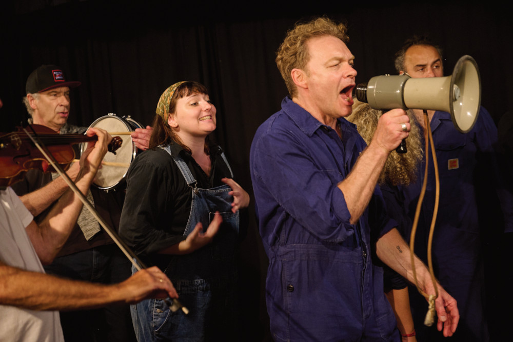 Mit einem Musical hat die Produktion allerdings wenig gemein: Sie wirkt eher wie die konzertante Aufführung eines Werks in Arbeit, ist mehr politisches Agitprop-Theater mit musikalischen Einlagen. Der Autor und Komponist des Stückes, Nedim Hazar, hat auch die Rolle des Erzählers übernommen, führt durchs Geschehen und bindet auch ehemalige „Fordianer“ als Zeitzeug:innen in die Geschichte ein.