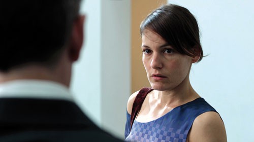 Ich hatte noch nie vorher Nacktszenen gedreht, jedenfalls nicht so. Die Entscheidung dazu musste im Vorfeld getroffen werden. Macht man es oder macht man es nicht. Christoph war es wichtig, ich konnte verstehen warum, nachdem er es mir erklärt hatte. Christophs Idee war es, dieser kalten Finanzwelt und den Büroräumen durch diese Nacktheit etwas entgegen zu setzen. Dadurch wird auch die Verletzlichkeit meiner Figur sichtbar gemacht. In den Liebesszenen hingegen wollten wir, dass beide angezogen sind, weil das immer eher kurze, atemlose Begegnungen sein sollten. Ich weiß nicht, ob dieses Konzept aufgegangen ist, aber ich finde es nicht schlimm, dass ich diese Nacktszenen hatte, denn für Christoph Hochhäusler bin ich gerne nackt (lacht).