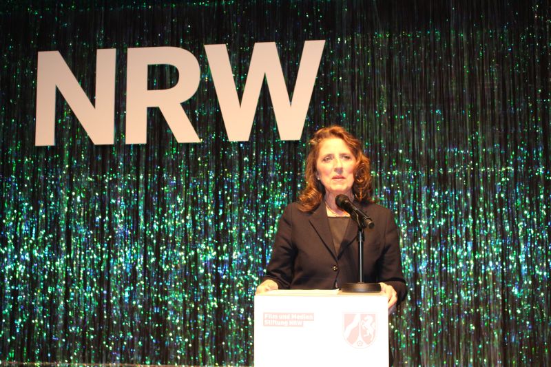 Simonischek kam kurz darauf im Gespräch mit Moderator Ingo Schmoll selbst zu Wort und gab einige Einblicke in die Arbeit an seiner Rolle und deren äußerem Erscheinungsbild. „Die Vorstellungen vom Äußeren von Toni Erdmann waren bei Maren Ade so klar, so deutlich und so lebendig, dass ich fasziniert war von ihrer Fantasie. Bis ich dann ihren Vater sah, da wusste ich, woher das kam.“ Natürlich ist der Schauspieler gespannt und neugierig, wie der Film in wenigen Tagen bei der Oscar-Verleihung abschneiden wird, auch wenn er am Abend des NRW-Empfangs beim kleinen britischen Bruder des Oscars, den BAFTAs, gegen „Son of Saul“ den Kürzeren ziehen musste. Die Tatsache, dass Hollywood über ein Remake des Films nachdenkt, empfindet Simonischek eher als Ehre: „Wenn Jack Nicholson den Film gesehen hat und sich dadurch so inspiriert fühlt, dass er sich nach sieben Jahren Filmabstinenz mit dieser Rolle wieder einklinken will, dann ist das doch toll. Da schaue ich mit der beruhigenden Gewissheit zu, dass ich selber das Original bin“, so der sympathische Mime weiter. Auch Petra Müller, die Geschäftsführerin der Film- und Medienstiftung, kam am Abend nicht um die Erwähnung des einen Films herum, „der das ganze Filmjahr überstrahlt hat, „Toni Erdmann“.“ Gleichzeitig konnte Müller aber auch unterstreichen, dass die Filmstiftung 2016 international präsenter war denn je. „Wir waren mit 170 Filmen auf über 120 internationalen Festivals präsent und haben mit ihnen weit über 100 Auszeichnungen erhalten“, fasste Müller zusammen. Vielleicht kommt in wenigen Tagen ja noch der Goldjunge aus Hollywood dazu…