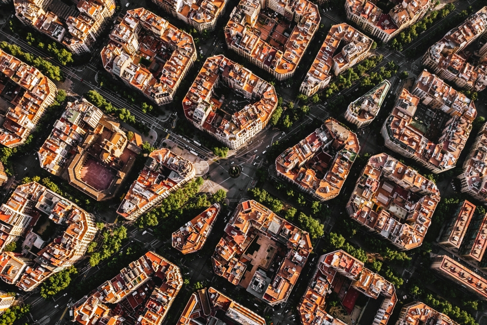 In Zukunft wohnen: Die schachbrettartige Stadtstruktur wird genutzt, um zwischen Querstraßen verkehrsberuhigte Zonen zu schaffen – die Superblocks.