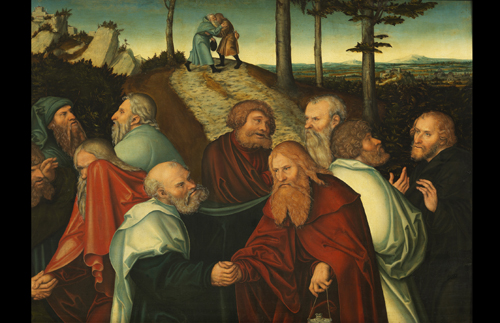 Schon das Jubiläum des Reformationsjahres „funktioniert“ als Anlass für die Ausstellung im Museum Kunstpalast in Düsseldorf. Voraussetzung aber ist das Werk in seiner Bedeutung selbst. Cranach malt voller Anmut und Intensität und rüttelt mit dem Stilmittel der Deutlichkeit den Betrachter auf, ja, seine Bilder sind zu ihrer Zeit eine moralische Instanz. Dazu tragen die Gesten und die feine Mimik bei. Ein herausragendes Beispiel ist die Darstellung der Ehebrecherin im Kontrast zum Mann, der sie steinigen möchte. Ein weiteres Meisterwerk der Düsseldorfer Ausstellung ist „Der Abschied der Apostel“, bei dem sich die Armbewegungen sanft fortsetzen und so das Weitertragen der Heilsbotschaft anschaulich werden lassen. Und dann sind da die fantastischen Figurenbeschreibungen, die den Naturalismus mit der Schilderung des Charakters verbinden. Kurzum, Lucas Cranach ist ein Realist von Gottes Gnaden.