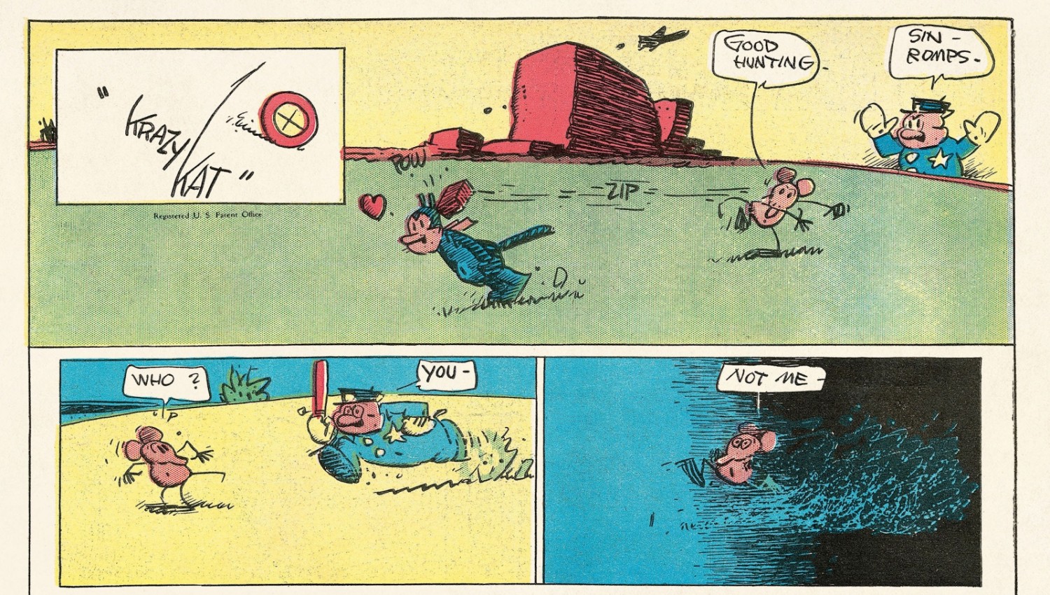 In ähnlicher Aufmachung erscheint nun von Braun ein Ziegelstein über „Krazy Kat“ von George Herriman, der auch in „McCay“ einen Kurzauftritt hat. Ziegelstein passt, enthält der Band doch sämtliche farbigen Sonntagsseiten der minimalistischen, surrealen Serie von 1935 bis 1944, die meist mit dem Ziegelsteinwurf einer linkischen Maus an den Kopf der naiv-lieben Katze enden. Künstler wie Picasso verehrten die Serie für ihre intellektuellen Anspielungen, logischen Widersprüche und künstlerischen Freiheiten. Auch hier ist ein ultimatives Kompendium zu Herriman und „Krazy Kat“ gelungen (Hardcover, 632 Seiten, farbig, Taschen Verlag).