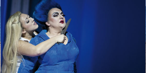 Letztlich sind es allein die schrillen, brachialen Farbcodes, die den Kern der Inszenierung ausmachen. Da macht es nichts, wenn dem Zuschauer bei einer Aufführungsdauer von gut zweieinhalb Stunden zuzüglich Pause einmal die Augen zufallen – er verpasst nicht viel, solange er die Ohren offen behält. Die Wasserwesen sind blau, die Menschen gelb – und weil es in der höfischen Welt Letzterer ständig sexuell aufgeladen zugeht, laufen sie in roten Stiefeln und Strumpfhosen herum, den Lippenstift so dick aufgetragen wie Batmans böser Joker. Eine Handvoll Schnappschüsse würde reichen, diese Bildersprache zu vermitteln. Bewegung ist in dieser Inszenierung ohnehin Mangelware, die Personenführung dürftig.
