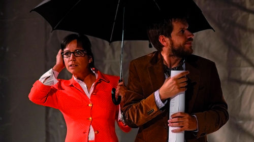 Das Theaterstück beginnt wie viele tägliche Meetings an Rhein und Ruhr und Wupper. Der Bürgermeister erkundigt sich nach dem Stand der städtischen Neu-Investition. Ein Prachtbau soll die Stadt verschönern, Klinik, Einkaufszentrum, die Immobilie ist schlichtweg austauschbar. Er will schließlich Wähler, Parteifreunde und natürlich seine Frau begeistern, die zufällig eine Baufirma besitzt, ja da schau her.