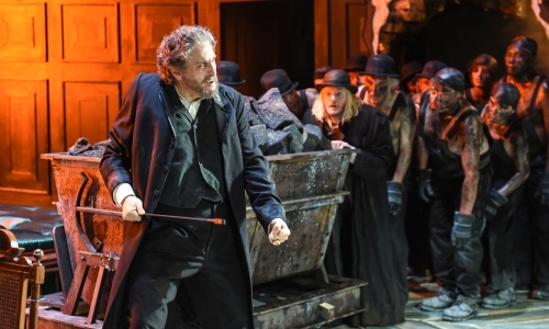 Die Götter dagegen werden brutal entzaubert. Bei ihrem Einzug nach Walhall blinken bunte Glühbirnen rund ums Bühnenportal wie in einem Varieté. Hilsdorf macht aus den Göttern (Groß-)Bürger des ausgehenden 19. Jahrhunderts. Um die sozialen Verhältnisse zu Zeiten Richard Wagners nachzuvollziehen, hat Hilsdorf Émile Zola gelesen. Im sehr französisch anmutenden Salon-Bühnenbild von Dieter Richter findet das ebenso seinen Niederschlag wie bei den Kostümen von Renate Schmitzer. So sind die Rheintöchter als sehr wohlklingendes Trio auch recht augenfällig den Can-Can-Tänzerinnen von Toulouse-Lautrec nachempfunden. Das verruchte Milieu ist ebenso typisch Hilsdorf wie die proletarischen Bergarbeiter aus Nibelheim.