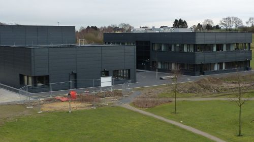 So ein Geothermiezentrum stellt man sich als hauptberuflicher Laie in Sachen Fassadengestaltung dann doch etwas anders vor. Hitze aus dem Schoß der Erde – es eröffnet ungeahnte farbliche Kreativ-Anstöße, die wenigstens mit gelb-rot-glühender Lava korrespondieren oder mit weißdampfenden Geysiren. Stattdessen sind alle drei Neubauten mit Metallplatten in einem Farbton beplankt, den man nach Genuss stimulierender Getränke soeben noch als „helles freundliches Schwarz“ charakterisiert. Dem Vernehmen nach habe sich der Architekt vom „schwarzen Lavagestein aus der Tiefe“ anregen lassen, wird kolportiert. Naja.