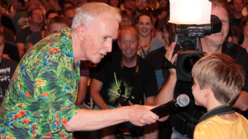 Kennedy ist sich der großen Verantwortung bewusst, die sie mit der Fortführung der Kultserie als Produzentin eingeht. Die Entscheidung, J.J. Abrams („Star Trek“) den Regieposten zu übertragen, unterstützt sie dabei voll und ganz: „Er ist ein großartiger Geschichtenerzähler, und seine Filme haben Herz. Damit verkörpert er viele der Tugenden, für die sowohl Spielberg als auch George Lucas stehen.“ Obwohl Kennedys Panel am Samstagmorgen stattfand, war es sehr gut besucht. Die späteren Fragestunden mit Carrie Fisher („Prinzessin Leia Organa“) und Mark Hamill („Luke Skywalker“) ließen die Grugahalle dann aus allen Nähten platzen. Für die Moderation der Panels konnte man mit Warwick Davis einen Schauspieler gewinnen, der Anfang der 80er Jahre mit elf Jahren in „Rückkehr der Jedi-Ritter“ sein Filmdebüt absolviert hatte. Der 1,70 Meter große Davis eroberte auf der Bühne der Grugahalle die Herzen der Fans im Sturm, zumal er die Shows mit typisch englischem Humor auflockerte.
