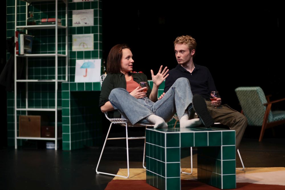 Die Bühne dreht sich und nun erfahren wir die Vorgänge aus Sicht von Jana und Erik und warum die SMS überhaupt geschrieben wurde. Hier sind die Dialoge im Grundsatz ähnlich. Hier kämpfen die Geschlechter den uralten Streit. Aber wie das immer so ist, vergeblich. Erik, der Filmkritiker, geht immer wieder mit den bekannten Stanzen auf seine scheinbar labile Frau zu, die sich vor vier Jahren bei einem Coaching-Wochenende sexuell belästigt und von Bruno verraten fühlte. Dummerweise wird sie auch vom Ehemann betrogen, was die Zuschauer:innen ja schon seit der ersten Szene wissen, aber nun wie ein Damoklesschwert über der Beziehung hängt.