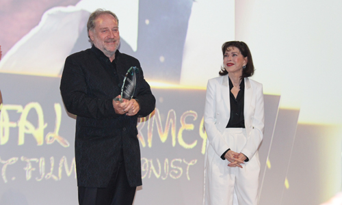 Auch der vor allem im Hollywood der 1980er Jahre erfolgreiche Filmkomponist Harold Faltermeyer („Beverly Hills Cop“) war Teil der 2024er-Jury. Eine Vorführung von „Top Gun: Maverick“ hatte am Vorabend das „Eat My Shorts“-Festival in seiner Anwesenheit eröffnet. Nachdem er sich zusammen mit Franco Nero am Samstag ins Goldene Buch der Stadt Hagen eintragen durfte, zählte er am Abend in der Stadthalle ebenfalls zu den Prämierten. Faltermeyer wurde der Preis als „bester internationaler Filmkomponist“ von seiner langjährigen Freundin Anja Kruse („Forsthaus Falkenau“, „Radio Heimat“) überreicht. Kruse erläuterte in ihrer Laudatio, dass ihre Bekanntschaft 2013 auf eine neue Ebene gehoben wurde, als sich Faltermeyer ihre „beste Freundin Birgitt Wolff geschnappt“ habe, und sie seitdem ebenfalls zu seiner Familie gehöre. „Musik gibt uns Schauspielern Unterstützung und hebt Filme auf ein anderes Niveau“, fuhr Kruse fort und bezeichnete den Geehrten als einen der wichtigsten und erfolgreichsten in der Branche. Harold Faltermeyer selbst war überrascht über den Preis, mit dem er nicht gerechnet hatte. In seiner Danksagung zeigte er sich aber auch kritisch gegenüber der eigenen Branche. „Heute ist man als Komponist der Musik nicht mehr so nahe wie früher. Das hängt auch mit Entwicklungen bezüglich der künstlichen Intelligenz zusammen, denn Sounddesigns ersetzen heutzutage Komponisten mehr und mehr“, so Faltermeyer. Im Trailer-Interview hatte der Komponist zuvor erklärt, dass er schon seit längerem beim Camgaroo-Award für Kurzfilme Jurymitglied sei, bei „Eat My Shorts“ nun allerdings zum ersten Mal. „Beim Kurzfilm hat man nicht so viel Zeit, da gibt es keinen Erklärbär. Da muss man sehr clever mit der Zeit umgehen. Das zeigt dann sehr schnell, ob es jemand draufhat oder nicht“, kommentierte Faltermeyer.