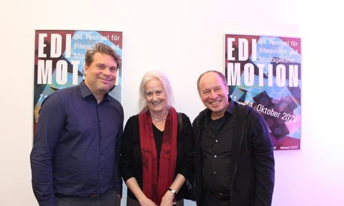 Freitag, 11. Oktober: Seit nunmehr 24 Jahren ist die Verleihung der Schnitt-Preise aus dem Festivalkalender in Nordrhein-Westfalen nicht mehr wegzudenken. Unter dem Namen „Edimotion – 24. Festival für Filmschnitt und Montagekunst“ haben sich auch 2024 an den vier Festivaltagen in Köln EditorInnen aus dutzenden Ländern zum kreativen Austausch zusammengefunden. Neben dem Themenschwerpunkt „Der historische Schnitt“, dem Länderfokus Australien, dem International Film Editors Forum (IFEF) und weiteren Werkstattgesprächen stehen auch in diesem Jahr wieder die jeweils fünf nominierten Filme in den Kategorien Spielfilm, Dokumentarfilm und Förderung Schnitt im Mittelpunkt, die mit anschließenden Filmgesprächen alle auf der großen Leinwand zur Aufführung gelangen. Tradition hat darüber hinaus auch die Verleihung des Ehrenpreises Schnitt, der in diesem Jahr an die Editorin, Autorin und Regisseurin Gabriele Voss geht, die insbesondere durch ihre Dokumentarfilm-Kollaborationen mit Christoph Hübner bekannt ist. Auf der Bühne am Eröffnungsabend präsentierte die langjährige künstlerische Leiterin von Edimotion, Kyra Scheurer, gemeinsam mit ihrem für die Sektion Spielfilm und das internationale Programm verantwortlichen Kollegen Dietmar Kraus mit Tama Tobias-Macht eine neue Mitarbeiterin, die 2024 bei Edimotion erstmals die organisatorische Leitung übernommen hat. Scheurer betonte, dass Edimotion in Nordrhein-Westfalen nach wie vor das erste und bislang einzige klimaneutrale Filmfestival sei. Dank einer Kooperation mit doxs! und durch eine Förderung durch die Imhoff-Stiftung sei in diesem Jahr auch ein Herzenswunsch in Erfüllung gegangen, so Scheurer weiter. Man habe dadurch erstmals eine weitere Festivaljury zusammengestellt, bestehend aus Jugendlichen zwischen 15 und 19 Jahren, die aus den Wettbewerbsbeiträgen der Spiel- und Dokumentarfilme ebenfalls ihre Sieger wählen und auszeichnen.