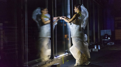 Bibiana Jimenez, die zu Johann Kresniks Ensemble gehörte, spielt diese Frau. Eine treffliche Besetzung, vereint sie doch Schönheit und Reife in ihren Bewegungen. Indem Bleikamp die Zeichen umdreht, aus dem Schwarz ein Weiß macht, betont sie den weiblichen Aspekt des Stücks. Geschlecht ist Schicksal, Frauen sterben anders als Männer. Und während bei Beckett die Bewegung auf den schaukelnden Stuhl reduziert bleibt, sich gleichsam alles im Inneren der Sprache ereignet, drehen Bleikamp und ihr Team vom Wehrtheater das Sujet und lassen die Verzweiflung tanzen. Bewegung muss nicht stumm bleiben, sondern darf sich entäußern. Während Anja Lais den Text einspricht, agiert Jimenez in schwindelerregender Höhe über den Dächern von Raderthal. Das Publikum ist ganz nah dran an der Dramatik dieses Dialogs und dem zunächst noch fröstelnden Körper der Tänzerin. Nur das Glas ist zwischen uns, die wir in jedem Moment unsere Rolle als Voyeure spüren, und dem Kampf hinter der Scheibe. Dieses Glas wird dann auch zur Metapher der Ohnmacht, gleich einer Fliege, die im Einmachglas festsitzt, wird es für diese Frau keine Rettung geben. Das ist der Abgrund in jedem einzelnen Leben, den Beckett so entschieden auszumessen vermochte. „Rockaby“ präsentiert sich als eine starke Produktion, deren Erlebnis man in den Alltag mitnimmt.