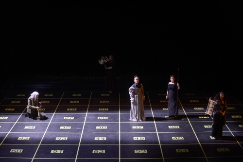 Immer noch steht das Zentralzitat Cages über allem: „200 Jahre lang haben uns die Europäer ihre Opern geschickt. Nun schicke ich sie alle zurück.“ Schön wäre es ja, und gar nicht schwierig, wenn da nicht dieses chinesische Noten-Gefledder auf 64 Feldern wäre und wenn der US-amerikanische Avantgarde-Composer nicht gleich alle 128 Opern ins Rennen um den geschleuderten Gehirnknoten geschickt hätte. Rimini Protokoll haben sich jedenfalls ausgiebig Gedanken zum Procedere gemacht, schicken Statisterie und Bühnenarbeiter demonstrativ übers leuchtende Schachbrett und plündern in Wuppertal genüsslich die Fundi von Bühnenbild und Kostümabteilung.