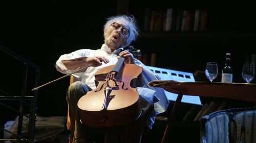 Sein Schwert hat Regisseurin Stöppler gegen einen Geigenbogen vertauscht. Ihr Quichotte ist Cellist, ein liebenswert kauziger Künstler und Musiklehrer, in dessen Haus sich anfangs Scharen von Schülern tummeln. Es geht im Wortsinn rund in seinem Haus. Stöppler nutzt die Drehbühne ausgiebig – nicht etwa, weil sonst nicht genug los wäre. Im Gegenteil ist der Chor so sehr in Aktion, dass es anfangs schon an Reizüberflutung grenzt.