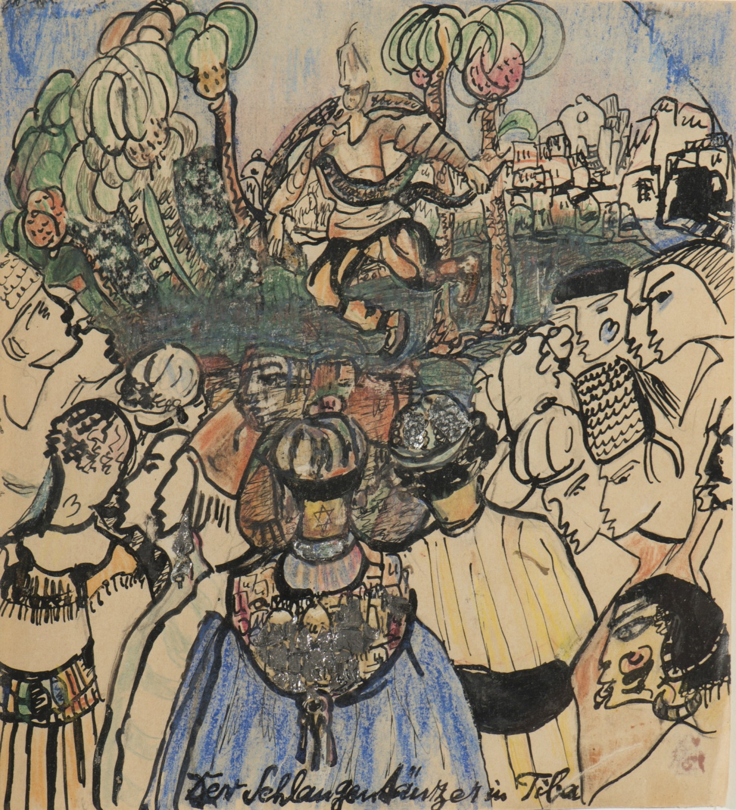 „There is a happy land where only children live“ (Bowie, 1967). Irgendwie sind für mich diese alten Zeilen immer mit den kleinformatigenBlei- und Farbstiftzeichnungen von Else Lasker-Schüler verbunden. Jetzt hat dasWuppertaler Von der Heydt-Museum sie in einen würdigen Rahmen gehängt, mitten in die zum Teil großformatige Kunst der Avantgarde aus dem Anfang des vergangenen menschenverachtenden Kriegsjahrhundert. Das alte „hunderttorige“ ägyptische Theben wurde für Lasker-Schüler zum mystisch verklärten Traumland in einer Zeit, wo die Kolonien und das Orientalische an sich (denken wir nur ans Mumienpulver in den Apotheken) natürlich Hochkonjunktur hatten und die so genannte Ferne für Normalsterbliche noch weitgehend unentdeckt war.