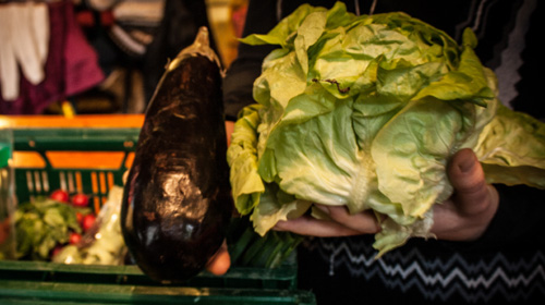 Beim letzten Mal gab es Vollkornspaghetti mit einer Soße aus Tomaten, Zucchini und Knoblauch. Dazu einen großen Salat mit Gurken, Salat und getrockneten Feigen – alles gerettete Lebensmittel.