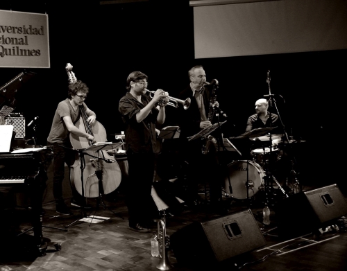 Der Name des Quartetts Fossile 4 mutet zwar antiquiert, urzeitlich an. Doch dahinter verbergen sich von alten Schellackplatten und Single-Formaten beeinflusste Jazztraditionen, die den Swing und Drive des Jazz in das Hier und Jetzt befördern. Kompakte Themen, kleine Variationen und kompromisslose Soli werden intensiv und kraftvoll hin zu knapp-prägnanten Miniaturen, griffigen Melodien der europäischen Jazz-Avantgarde geführt. Dafür zuständig sind vier renommierte Musiker: Rudi Mahall am der Bassklarinette, Trompeter Valentin Garvie, Sebastian Gramss am Kontrabass und Schlagzeuger Thomas Sauerborn.