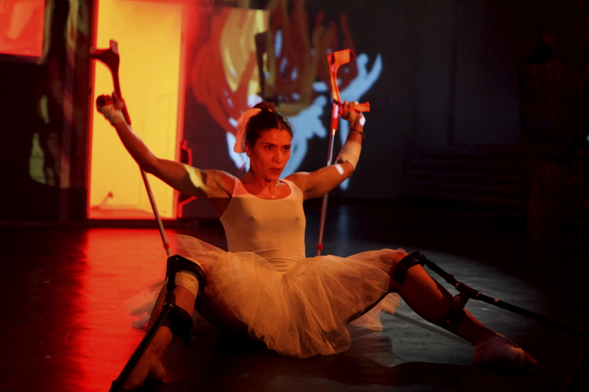 Nach Deutschland zu gehen, das hatte sie sich nie vorstellen können, aber genau hier schließt sich der Kreis. In den 1920er Jahren war der Großvater nach Südamerika ausgewandert, nun kehrte die Enkelin zurück. Tänzerin will sie werden, und wie alle Tanzkünstler fürchtet sie das eine, den Bruch des Fußgelenks. Dräuend schwebt ein riesiger menschlicher Knochen über der Szene. Klug wird der Bühnenraum über die Aufführung hinweg mit Projektionen ausgestattet, die das Solo bildhaft ergänzen. Zu sehen ist ein Häuschen, aus dem Bibiana Jiménez herausklettert. Wir erfahren die intimsten Details ihres Lebenslaufs, von den Zerwürfnissen mit dem Vater über eine Abtreibung, von zahllosen Verletzungen, Schicksalsschlägen und dem eisernen Willen, als Tanzkünstlerin zu arbeiten. Darüber zerbricht das Herz, die Existenz und möglicherweise sogar das Ziel aller Mühen.