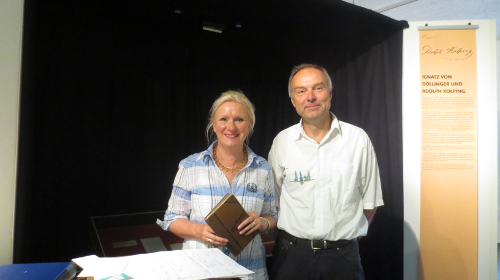 Bei der anschließenden Lesung trägt Heike Ising-Alms verschiedene Briefe von Adolph Kolping und Friedrich Engels vor, die vor allem zeigen: Obwohl sich beide für mehr soziale Gerechtigkeit einsetzen, liegt der entscheidende Unterschied in der Art und Weise der Umsetzung. Engels wünscht sich, die von Pietisten durchzogene Gesellschaft zu revolutionieren, neue Strukturen sollen her! Kolping ist da etwas weniger radikal, ihm genügt es, die bestehenden Hierarchien lediglich gerechter zu machen. Unter Beibehaltung der christlichen Werte, versteht sich. Andächtig lauschend wie bei einer Märchenstunde, geht den Besuchern wohl ein Gedanke durch den Kopf: „Die haben sich was getraut damals.“