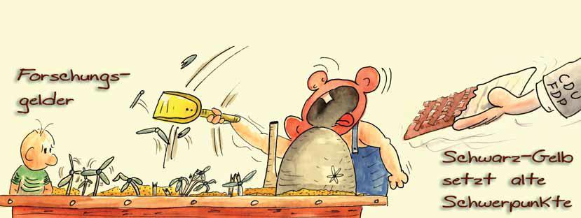 Unser Job ist es, für Forschung und Entwicklung optimale Rahmenbedingungen zu schaffen. Für mich kommt es auf zwei Dinge an: Geld und Freiheit. Mit dem Hochschulfreiheitsgesetz haben die Hochschulen erstmals die Möglichkeit, frei über Personal-, Organisations- und Finanzfragen zu entscheiden. Zugleich haben unsere Hochschulen heute pro Jahr eine halbe Milliarde Euro mehr zur Verfügung als 2005. Bei der Innovationsförderung konzentrieren wir uns auf vier Zukunftsfelder. Trotz angespannter Haushaltslage haben wir die Förderung für diese Technologien um 25 Prozent gesteigert, auf rund 600 Millionen Euro in diesem Jahr. Die Gießkanne haben wir in den Schuppen gestellt, wir versuchen, das Geld so effektiv einzusetzen wie nur möglich.