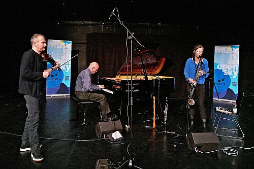 Den Anfang macht die niederländische Klarinettistin Fie Schouten mit ihren Kollegen Régis Huby an der Geige und Guus Janssen am Flügel. Zu ihrem Programm „Vostok Remote Islands“ ließ sie sich von dem halb literarischen, halb kartographischen Buch „Atlas der abgelegenen Inseln“ aus dem Jahr 2009 der deutschen Schriftstellerin Judith Schalansky inspirieren. Darin werden 50 Inseln beschrieben, auf denen laut Untertitel die Autorin „nie war und niemals sein werde“. Drei Abschnitte daraus rezitiert Schouten zwischen den musikalischen Vorträgen. Die kammermusikalischen Inselerkundungen basieren auf einer musikalischen Idee in Form eines Motivs, einer kleinen Melodie oder einer rhythmischen Struktur. Diese Vorgaben werden weiterverarbeitet, bis sich weitere Ideen entwickeln. Es sind vielschichtige Konversationen im Duo und Trio, bei denen ruhige und forsche Momente geschickt alternieren. Dabei changiert die frei tonale Musiksprache zwischen moderner Klassik (etwa der Dodekaphonie) und Jazzimprovisationen.