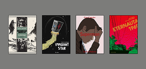 Federico Cacciapaglia schickt in „Immigrant Star“ Ziggy, einen arbeitsuchenden, kosmischen Flüchtling (die Erde ist gerade explodiert) und seinen Hund Bowie ins All. Bowie muss kotzen, wenn er nur das Wort Job hört, und Ziggy merkt nach etlichen Fehlversuchen, dass er sich langsam seiner Bestimmung als freischaffender Künstler annähern muss. Ein wildes Abenteuer durch ein fantastisches Sonnensystem – auf Englisch (Jaja Verlag). Fred Dewilde verarbeitet in „Bataclan – Wie ich überlebte“ seine Erlebnisse bei dem Terroranschlag auf die Pariser Konzerthalle, in der er als Zuschauer war. Die Stunden in Todesangst schildert er in klaustrophobischen Zeichnungen. Seine Gedanken der folgenden Tage und Wochen verfasst er hingegen rein schriftlich. Das ist etwas enttäuschend, vor allem nachdem die Charlie Hebdo-Zeichner Catherine Meurisse und Luz in ihren Werken so eindrucksvolle Bilder für den Weg zurück ins Leben gefunden haben (Panini). Gion Capeder erzählt in „Superman“ von einem erfolgreichen Geschäftsmann, der zwischen Familie, Karrierestress und Affäre langsam den Halt unter dem Boden verliert. In klaren, sachlichen Zeichnungen nähert sich Capeder dem Abgrund, die Kühle der Erzählung steht der Empathie allerdings etwas im Wege. Letztendlich ist einem das selbstverschuldete Schicksal des Protagonisten etwas egal (Edition Moderne).
