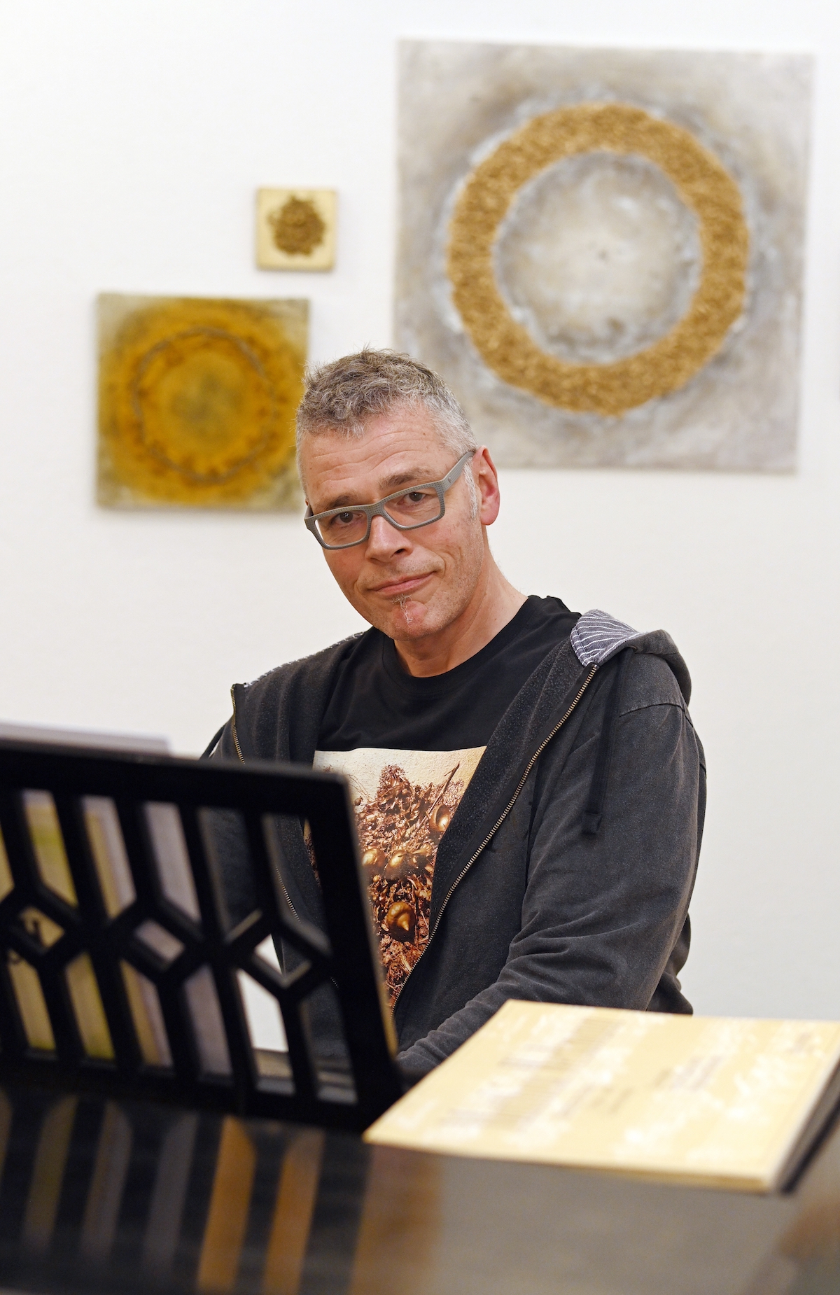 Der examinierte Kirchenmusiker Jürgen Gottmann „rockt“ seit 1991 in der Kirche der Elberfelder St. Petri-Gemeinde. Seine dreidimensionalen Darstellungen auf Leinwand und anderen Malgründen bearbeitet er mit Spachtelmasse, Rost oder getrockneten Pflanzenmaterialien (Kaffee, Gräser, Blätter, Beeren …). Häufig haben sie einen Bezug zu Religion und Glaube.