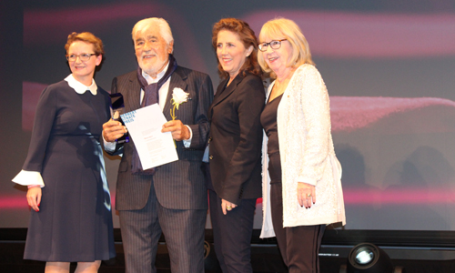 Bevor schließlich die NRW-Kinobetreiber im Mittelpunkt standen, zog man die Verleihung des Herbert-Strate-Preises für herausragende Verdienste um Film und Kino an den Schauspieler Mario Adorf vor, die bislang stets als Höhepunkt den Ausklang der Kinoprogrammpreisverleihungen bildete. Auf die 89jährige Kinolegende hielt seine Kollegin und Freundin Sunnyi Melles eine berührende Laudatio. „Je mehr Gedanken ich mir über ihn mache, desto seelenverwandter wird er mir. Durch sein Agieren und Reagieren werden alle seine Leinwandpartner an seiner Seite noch besser – das liegt an seinem Einfühlungsvermögen und seinem Eros, denn Mario Adorf ist auch sehr sexy“, würdigte Melles den Geehrten, bevor sie a cappella „L’important c’est la rose“ anstimmte und Adorf eine weiße Rose überreichte. Der Herbert-Strate-Preisträger war gerührt angesichts dieser „unglaublichen Laudatio“ und wünschte sich in seiner Dankesrede, dass wieder mehr junge Leute den Weg ins Kino finden – und die Gewaltbereitschaft unter ihnen wieder zurückgehe, die sich in Attentaten und Morddrohungen gegen Politiker derzeit auf unschöne Weise manifestiere. Diese Woche startet mit „Es hätte schlimmer kommen können – Mario Adorf“ eine Dokumentation von Dominik Wessely in den Kinos. Der Regisseur erzählte im Gloria, dass ihn der Kölner Produzent Herbert Schwering mit Adorf bekannt gemacht habe. Nachdem er die Bühnenshow des Schauspielers gesehen hatte, in der dieser sein Publikum mit Geschichten aus seinem Leben begeisterte, reifte in Wessely der Plan, diese Geschichten in einer Kinodokumentation festzuhalten.