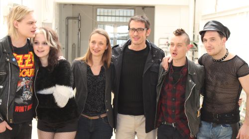 Für den Regisseur ist „Tod den Hippies, es lebe der Punk“ eine schwarze Komödie, eine Satire, die sich über die „obstrusen 80er Jahre“ lustig macht. Damals sei die Lebenseinstellung der Jugendlichen eine gänzlich andere als heutzutage gewesen. „Man lebte, als gäbe es kein Morgen. Man haute einfach auf die Kacke, scherte sich nicht um Vorsorge oder irgendwelche Sicherheiten“, erläutert Oskar Roehler im Interview. Für ihn persönlich ständen die 80er viel eher als die 70er Jahre für „Sex and Drugs and Rock’n’roll“. Das habe damals sicherlich auch mit dem „Inselding“ zusammengehangen, jenem Sonderstatus West-Berlins inmitten eines sozialistisch regierten Umlandes. Die Freiheit und Anarchie, die seinen Punk-Film durchströmt, macht diesen nach Meinung seines Regisseurs ein Stückweit auch zu einem politischen Film. Dass er sein jugendliches Berlin-Abenteuer nun größtenteils in Köln nachgestellt hat, ist für Roehler zumindest filmpolitisch sehr nahe liegend. Durch die Film- und Medienstiftung NRW hätte er hier eine großzügige Förderung erhalten, die ihm in Berlin verwehrt geblieben ist. „Da man in den 80er Jahren ohnehin überwiegend innen gelebt hat, und diese Innenräume hier so wunderbar nachgebaut hat, fällt das im fertigen Film gar nicht weiter auf.“ Davon wird man sich dann im Kino überzeugen können, wo der Film voraussichtlich noch in diesem Jahr vom X-Verleih ausgewertet werden soll.