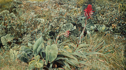Franz Gertsch, Bromelia (Guadaloupe), 2012, Eitempera auf ungrundierter Baumwolle, 250 x 370 cm