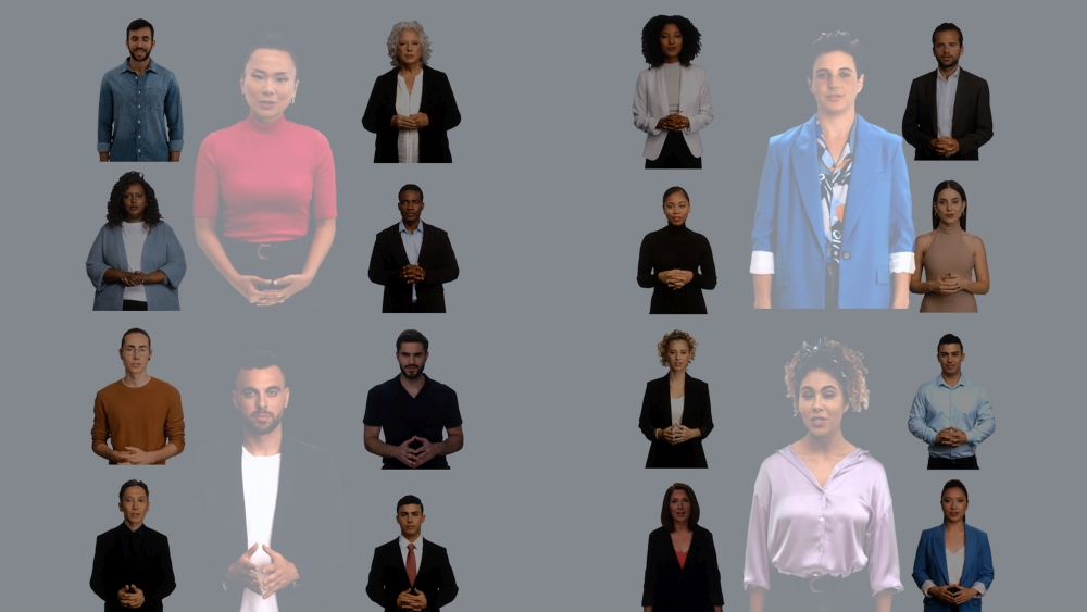 Beim Betreten des Ausstellungsraumes schaut man auf ein Video, das mit Laborbildern, Statistiken und zuspitzenden Textzeilen den molekularbiologischen Eingriff mit der Gen-Schere und damit die Veränderung und Optimierung von Leben zur Diskussion stellt. Wie weit dürfen Wissenschaft und Medizin gehen, wann hört der Mensch auf, ein einzigartiges Wesen zu sein? Das zweite Video zeigt Avatare. Ein Prediger trägt einen mit Künstlicher Intelligenz generierten Text vor; Menschen, die auf dem Monitor einmal scharf zu sehen sind, dann im lichthellen Raum verblassen, repetieren den Text wie das Mantra einer religiösen Gemeinde – doch alle Personen und auch der Prediger sind künstlich am Computer entstanden. Sie sind perfekt und folgsam und verwirklichen mit anderen Mitteln die Entmenschlichung – und das Verschwinden des Menschen, auch wenn sie ganz genauso wie Menschen aussehen.