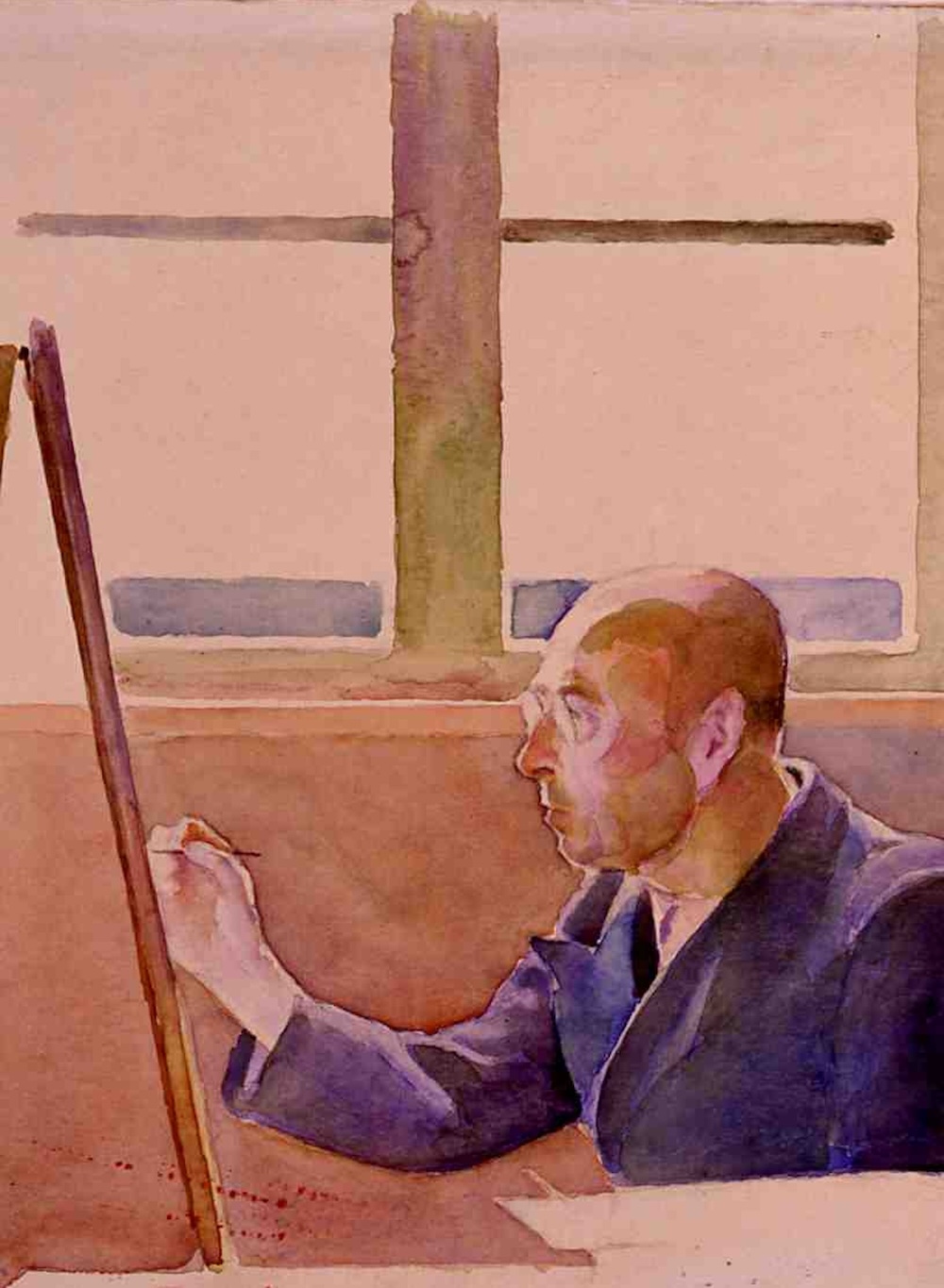 Marian Ruzamski, An der Staffelei, Konzentrationslager Auschwitz, 1943 – 1944, Aquarell auf Karton, 24,5 × 19,5 cm, Staatliches Museum Auschwitz-BirkenauHat der Ausstellungstitel „Kunst der Erinnerung“ auch etwas Doppeldeutiges?
