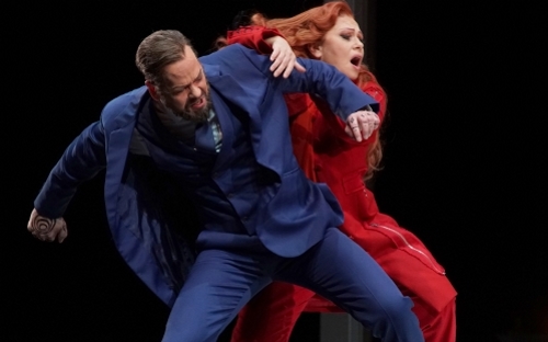 Als der Komponist Aribert Reimann 2006 von einem Dramaturgen auf den Grillparzer-Stoff gestoßen wurde, erkannte er darin etwas, wonach er lange gesucht hatte: ein weibliches Pendant zu seinem Opern-König Lear, mit dem er 1978 mit Dietrich Fischer-Dieskau in der Titelrolle seinen internationalen Durchbruch erlebte. Ein Kompositionsauftrag der Wiener Staatsoper verhalf dem Werk zur Entstehung. 2010 war die Uraufführung. Es folgten Frankfurt, Tokio, Berlin – und nun auch Essen. Regisseur Kay Link hat eine insgesamt recht zurückgenommene Neuinszenierung geschaffen – in der etwa der Mord an den Kindern nicht direkt zu sehen ist, der genaue Ablauf gewissermaßen in der Schwebe bleibt. Das Ehedrama ist in leichter Abstraktion in die heutige Zeit verpflanzt worden. Ausstatter Frank Albert hat dazu die Kulisse einer modernen Villa gewählt.