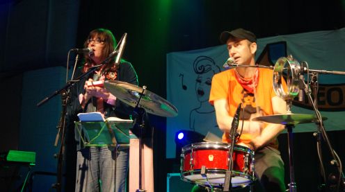 Zunächst entert aber Käptn Blauschimmel die Bühne. Mit klarer, geistreicher Sprache und Songs, wie „Unkraut vergeht“ oder „Tanz der Mutanten“ kritisiert er gleichermaßen die Auswüchse des Kapitalismus wie die Gefahren genmanipulierten Gemüses. Seine gesellschaftskritischen Protestsongs garniert er mit sattem Synthie-Sound und Keyboard-Klimpern, während er seinen rotzigen Gesang ins Mikro drischt. Aber Käptn Blauschimmel kann auch lustig, indem er in einem anderen Song fordert: „Trink mit mir, noch ein Bier.“