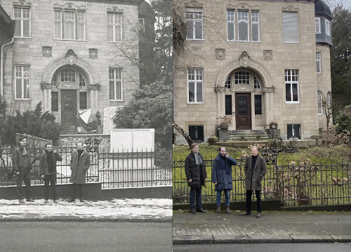 Das Interessante ist, dass die Künstler gerade nicht die historische Aktion dokumentieren, sondern dass es sich, wie der Titel schon sagt, um eine „Nachstellung“, also eine Aktualisierung aus heutiger Perspektive handelt. In dem Film von Konsortium wird beispielsweise die Autofahrt von der Düsseldorfer Kunstakademie zur ehemaligen Galerie Parnass zu sehen sein. Die Villa ist heute aber wieder ein Wohnhaus. Die Aufnahme ist schwarzweiß, aber es ist trotzdem klar erkennbar, dass sie aus der Gegenwart stammt, so sieht man beispielsweise aktuelle Wahlplakate am Straßenrand. Das Ganze oszilliert zwischen Vergangenheit und Gegenwart. Man hört dazu verschiedene Personen, die über ihre Karrieren sprechen, über Lebensentscheidungen, Wendepunkte in ihren Biografien. Über Fragen also, die sich vielleicht Polke, Richter, Kuttner und Lueg damals auch während der Fahrt gestellt haben. Die Fragen werden damit in die Gegenwart geholt und gleichzeitig kommen auch die Geschichten der Künstler wieder auf den Boden der Tatsachen zurück. Denn darum geht es auch bei dem Projekt. Wir lieben ja Heldengeschichten und auch die Kunstgeschichte erzählt sie gern, so wie die Geschichte von der legendär gewordenen „Vorgartenausstellung“. Die Realität, die dahinter stand, ist aber vielleicht gar nicht so spektakulär und die Fragen sind vielmehr universell: Was mache ich als Künstler, wenn ich an der Akademie studiert habe? Wie kann ich auf mich aufmerksam machen? Sollte ich Netzwerke knüpfen oder mich mit anderen zusammentun? Das sind Fragen, vor denen Künstler:innen auch heute stehen. Und das sind die Parallelen zwischen gestern und heute.