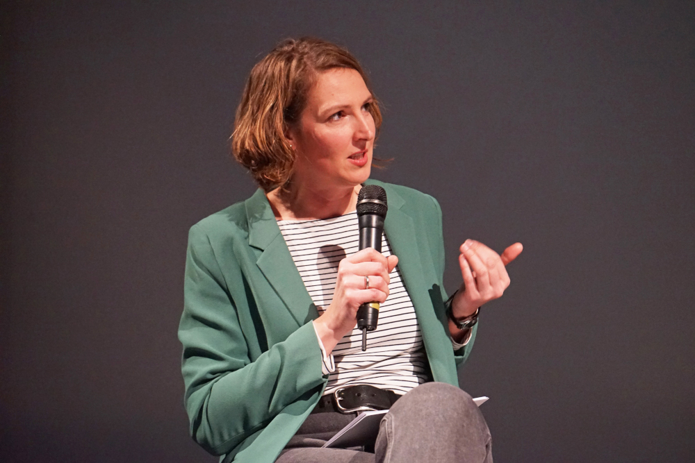 Moderatorin Franziska Hilfenhaus kündigte von einem der auf die Kino-Vorbühne gestellten Stühle aus eher eine allgemeine Diskussion über die aktuelle Situation an den EU-Außengrenzen und die derzeitig diskutierten politischen Maßnahmen an. Sarah Schneider, Vorsitzende der NGO Medical Volonteers International, redete als erste Rednerin dann gleich Klartext: „Die Lage ist katastrophal, sie ist unmenschlich. Sie kriegen an den Grenzen keine medizinische Versorgung, sie kriegen nicht ausreichend Nahrung, haben kein Dach über dem Kopf. Menschen werden als Spielball von kruden politischen Entscheidungen benutzt.“ Ihre NGO habe zur Zeit keine Projekte in Belarus, über dessen Methoden und die Reaktion der polnischen Seite Agnieszka Hollands Film berichtet. Sarah Schneider kritisierte auch die jüngsten Beschlüsse der Bundesregierung durch die „sämtliche Organisationen, die auf dem Landweg arbeiten, kriminalisiert würden. Wir müssen das alles ändern. Erst die Menschwürde achten, dann erst alles andere.“ Sie betonte: „Push-Backs, die wir gleich im Film sehen werden, sind theoretisch verboten“.