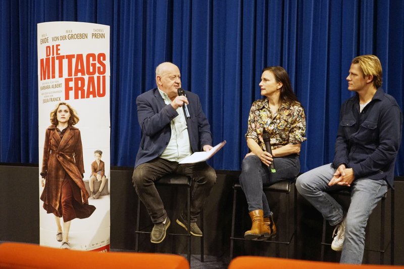 Immer wieder fanden die Anwesenden den Bezug vom Gestern ins Heute. „Wilhelm ist ein gekränkter Mann. Und diese Kränkung des Mannes ist ein Thema, das heutzutage wieder so präsent ist. Warum gibt es heute Gewalt gegen Frauen? Weil auch diese Kränkung da ist. Die Frage ist: Wo kommt diese Kränkung her, und was kann man machen, damit diese Kränkung verschwindet?“ Dass die Regisseurin, ihr Hauptdarsteller und das Publikum fast eine Stunde diskutierten, beweist, dass „Die Mittagsfrau“ ein Film ist, der nach Austausch verlangt. Im Anschluss stellten sich Barbara Albert und Max von der Groeben weiteren Gesprächen im Biergarten des Cinenova.