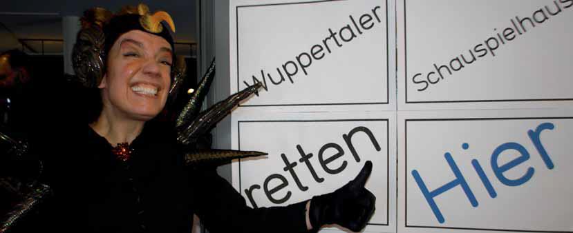 Auf dem Theatervorplatz war mächtig Theater. Clowns, Hexen und Prinzessinnen demonstrierten für den Erhalt der Wuppertaler Bühnen. Mit Bussen angereiste Schauspieler aus ganz Nordrhein-Westfalen und zu Fuß gekommene, empörte Zuschauer dieser Stadt, die mit Kostümen und Schminke den Spieß umdrehten und diesmal selbst ihre Rollen spielten, bildeten ein buntes Menschenmeer. Insgesamt 2000 Demonstranten, für Wuppertal eine beeindruckende Menge, wärmten sich an den Blechfässern, in denen Holzfeuer loderten. Eine Frau Mahlzahn, die autoritäre Drachenlehrerin aus Michael Endes Heldenopus „Jim Knopf“, verteilte eifrig Flugblätter. Ein fingierter Rotarmist forderte auf seinem Plakat: „Ich will doch nur spielen!“ Nach kurzer Zeit waren die Anstecker mit der Aufschrift: „Rettet das Schauspiel“ restlos ausverkauft. Aber auch die fast baugleichen Exemplare zum Erhalt der Oper wurden gern genommen. Dazu die Verkäuferin: „Wenn das Schauspiel geschlossen ist, kann sich die Oper auch nicht mehr lange halten.“ Auf der eigens für die Demo errichteten Bühne trommelte und rockte es, bis die Kundgebung begann. Doch keine abgelesenen Kommunikees mussten ertragen werden. Auch vor dem Mikro herrschten Drama und Komödie. Ines Colsman von dem Aktionsbündnis „Wuppertal wehrt sich“ brandmarkte die Sparpläne der CDU-SPD-Mehrheit im Stadtrat: „Der Pleitegeier hat Hunger auf Schulen, auf Schwimmbäder und auf unser Schauspielhaus.“ Im Anschluss trat Mechthild Großmann ans Rednerpult. Die dem Wuppertaler Theater verbundene Tänzerin und Schauspielern, vielen bekannt in der Rolle der unbarmherzigen Staatsanwältin im Tatort Münster, erinnerte zunächst an die Eröffnung des Hauses vor 44 Jahren, die sie als junge Frau miterlebt hatte. Heinrich Böll habe damals seine vielbeachtete Rede „Die Freiheit der Kunst“ gehalten. Zynisch kommentierte die Schauspielerin die Aussage des für die Einhaltung der Haushaltsgesetze zuständigen Düsseldorfer Regierungspräsidenten Jürgen Büssow, der die Stadt wegen ihres Mutes, das Schauspielhaus zu schließen, beglückwünscht hatte. „Früher entschuldigten sich Politiker, wenn sie kulturelle Einrichtungen schlossen. Inzwischen wollen sie sogar dafür gefeiert werden“, erklärte Großmann.