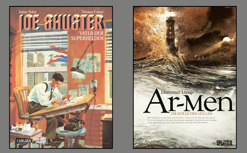 Jerry Siegel hat ihn erdacht, Joe Shuster hat ihn gezeichnet: Superman ist eine Selbstermächtigungsfantasie zweier amerikanischer Juden, die die Figur in den 1930er Jahren erfanden und schon bald für 130 Dollar die Rechte daran verkauften. Eine ökonomisch tragische Geschichte, aber auch eine tolle Geschichte über die frühen Erfolge von Superhelden-Comics. Julian Voloj und Thomas Campi erzählen in „Joe Shuster – Vater der Superhelden“ eine Geschichte über Comicgeschichte – das Aufkommen der Hefte, dem „Comic Code“ und der späten Genugtuung der beiden Superman-Erfinder (Carlsen).