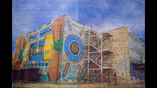 Das gleichmäßige Klacken lässt an Webstühle denken. Das Atelier auf einem Hofgrundstück in Elberfeld erinnert an eine Werkstatt mit traditioneller Manufaktur. Andererseits sind mehrere Computer angeschaltet, über deren Monitore endlose Reihen von Zahlen rauschen. Die Produktion im Atelier von Holger Bär ist in vollem Gange, alle drei Mal-Maschinen sind in Betrieb. In der Ausstellung, die er gemeinsam mit Peter Schmersal in Solingen durchführt, zeigt Bär seine neueste Werkgruppe, die von Zahlen und Ziffern handelt: mit ihren verschiedenen Konnotationen von Volkszählung, staatlicher Überwachung, enormer Datenmenge für wissenschaftliche Experimente und als Identifikations- und Telefonnummer. Im Grunde ist das künstlerische Verfahren bei dieser Werkgruppe tautologisch: Holger Bärs Mal-Maschinen basieren auf der Codierung von Farben durch Zahlen. Hier nun stellen sie das undurchsichtige „Funktionieren“ von Zahlenmengen dar. Dies führt zu völlig abstrakten Farbansammlungen, die mitunter Ruhe ausstrahlen und mitunter flirrendes Chaos demonstrieren. Eines der Bilder zeigt in seinem Zentrum eine „Cloud“: Ausdruck für einen permanenten Strom aller Informationen, die dadurch ihre Privatheit verlieren. Ob die Vorstellung einer Wolke nicht ein Wohlgefühl suggeriere, ja, der Begriff ein Euphemismus sei, fragt Holger Bär im Gespräch. Die monumentalen realistischen Bilder wiederum zeigen das Atlas-Gebäude im CERN und das Statistische Bundesamt. Aus der Nähe lösen sich die Motive in Farbpunkte auf: in eine sorgfältig aufgetragene Substanz in einzelnen Farbtönen.