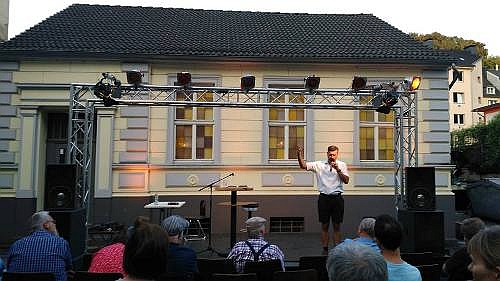 Bialas ist bekannt als kulturaffin und präsent als Rezitator, gern mit Schal, wenn es nicht gerade so warm ist wie an diesem Juliabend. Keineswegs fein-vergeistigt geriet er vor zwei Wochen überregional in Schlagzeilen, als er von einer Demo gegen rechts ein polizeikritisches Video online stellte: Teilnehmer Thomas Lenz, Leiter von Wuppertals Arbeitsagentur, wurde von mehreren Polizisten robust fixiert und festgenommen. Aus dem Kontext gerissen? Gar unkollegial, denn Bialas war früher selbst Polizist? Lebensfern oder unentschlossen jedenfalls hatte er sich dort nicht präsentiert, so sehr man das bei lyrischen Gemütern sonst vermuten mag.