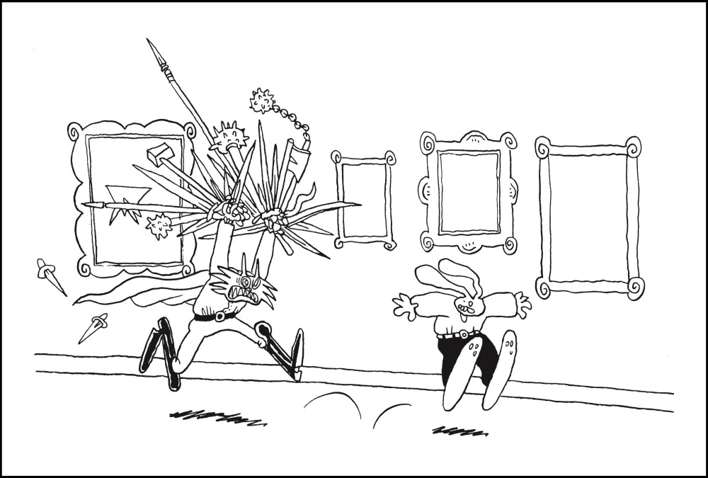 Mit „Mehltau“ ging Lewis Trondheim 1994 weiter in der Geschichte zurück – ins Mittelalter. Und doch wirkt seine Mantel- und Degen-Action, die gerade neu aufgelegt wird, aktueller denn je. Der dritte Schwarzweißband um Trondheims berühmte Figur Herr Hase, bevor dieser regulär farbig in Serie ging, ist eine einzige aberwitzige Verfolgungsjagd zwischen dem Putschisten Mehltau und Hase, einem Revolutionär. Gerade ist auch der 20. Band „Die fröhliche Apokalypse“ der inzwischen drei Herr Hase-Reihen erschienen – auf gewohnt hohem Niveau. Ein Ende ist nach dem Relaunch vor ein paar Jahren glücklicherweise nicht in Sicht (Reprodukt).