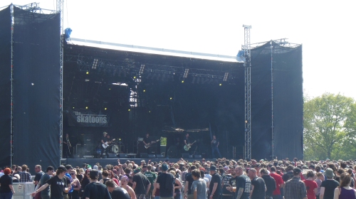 Danach liefern The Skatoons solide ab. Der Raum vor der Bühne wird voller, viele Fans haben die Hamburger im Gepäck so dass kaum auffällt, dass Sonic Boom Six erst gar nicht auftauchen. Der anschließende Deutschpunk von Zaunpfahl ist tanzbar, die ironischen Texte (zum Beispiel “Tote tanzen keinen Pogo“) lassen sich aber auch bequem im Gras sitzend genießen. Das kann man von dem Hardcore-Punk der Boskops nicht unbedingt behaupten. Optisch und akustisch locken dann erst wieder Mad Sin vor die Bühne. Köfte hüpft wie ein feister Flummi durch die Gegend, am Sound der Alt-Psychobillys gefällt mir stets nur der Kontrabass. Irgendjemand schreit da bereits impertinent nach Dritte Wahl. Wie unhöflich denke ich noch, bevor ich merke, dass ich selbst es bin.