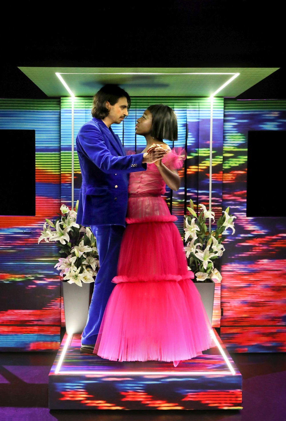 Adi Hrustemović und Sarah Yawa Quarshie in „Das Spiel ist aus“, Foto: Birgit HupfeldWerden die beiden in ihren alten Lebenswelten dem ollen Determinismus entkommen können, oder sind Verantwortungsbewusstsein gegenüber einer untergebenen Gruppe Mitmenschen oder gefährdeter Familienmitglieder stärker als „the power of love, a force from above“? Eve und Pierre geben alles und sich auch Mühe, doch die Verhältnisse, die sind nicht so (fast ein Zitat) und die Sachzwänge blockieren die Liebe.Nixist mitPleasuredome, ab in die Autoscooterhalle: Total Eclipse of a heart.Black. Ein herrlich überdrehter, entphilosophierter Sartre-Abend, jede Anreise wert.