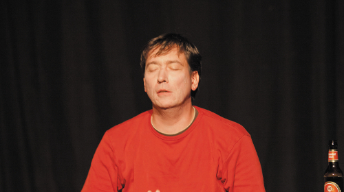 So der Beginn von „Hand aufs Herz“, von und mit Jens Kalkhorst. Es geht um einen Hypochonder, der sich allein in einer Bar mit den Zweifeln an seiner Gesundheit quält. Insgesamt mimt Kalkhorst ein ziemlich hysterisches und aufgedrehtes Exemplar eines eingebildeten Kranken. Bernd, so der Name, ist äußerst aufgeregt und regt sich mächtig auf – über seinen inkompetenten Arzt, aber auch über die Pharmaindustrie und den Welthunger. Und genau da liegt der Unterschied zum üblichen „eingebildeten Kranken“: Wo andere vor Angst ums eigene Wohlergehen völlig durchdrehen, sorgt sich Hypochonder-Bernd auch um viel weitreichendere Probleme.