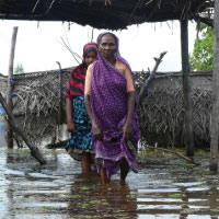 Trotz des Hochwassers harren viele Menschen so lange es geht in ihren Häusern aus. Auch diese Frau hat ihr Dorf nicht verlassen. Noch nicht? |