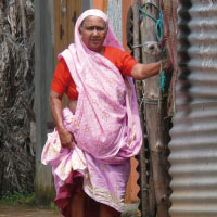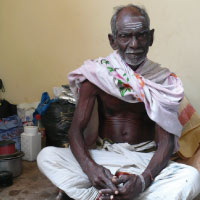 Die Flüchtlinge leben unter einfachsten Bedingungen in den improvisierten Lagern. Dieser Angehörige der hinduistischen Minderheit besitzt einige Küchenutensilien, Lebensmittel und eine Schlafmatte. |