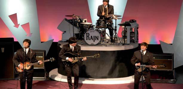 Etwas gemütlicher lassen es dann fünf schon etwas angegraute und dem deutschen „Äppelwoi“ nicht abgeneigte Herren aus den USA angehen, die mit „Rain“ (14.-26.7.) ihren Idolen, den Beatles, Tribut zollen. Während Mark Lewis mit seinem Keybord „unsichtbar“ aus dem Off agiert, lassen Joe Bithorn (Georg), Ralph Castelli (Ringo), Joe Curatolo (Paul) und Steve Landes (John) die Songs der „Fab Four“ wiederauferstehen. Wenn man die Augen schließt, ist die Illusion perfekt: Das ist mehr als eine Cover-Band. Das sind die Beatles 1A.