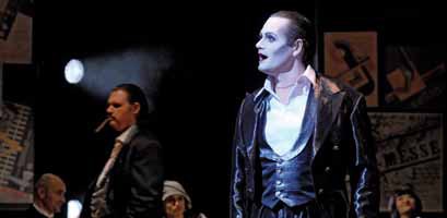 Kaum eine Musicalrolle ist in den Köpfen der Genre-Liebhaber so besetzt wie die der Sally Bowles und des Conferenciers durch Liza Minelli und Joel Grey in der grandiosen Verfilmung von Bob Fosse (1972). Während die Minelli noch immer unerreichbar scheint, hat Joel Greys morbid-lüsterne Interpretation selbst hierzulande schon ernsthafte Konkurrenz gehabt. Wolfgang Reichmann war am Berliner Theater des Westens noch um eine Spur diabolischer, und der ins Publikum geschleuderte Zynismus von Georg Preuße alias Mary ließ einem das Lachen im Halse stecken bleiben. Mit der Bühnenpräsenz dieser beiden Rollen steht und fällt „Cabaret“. Und wenn man bei ihrer Besetzung nicht aus dem Vollen der geeigneten Darsteller schöpfen kann, muss man sich für die Inszenierung etwas einfallen lassen.